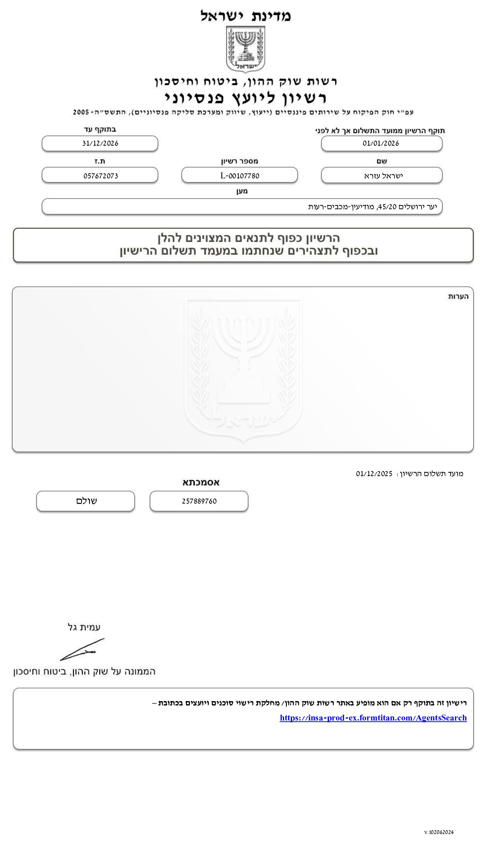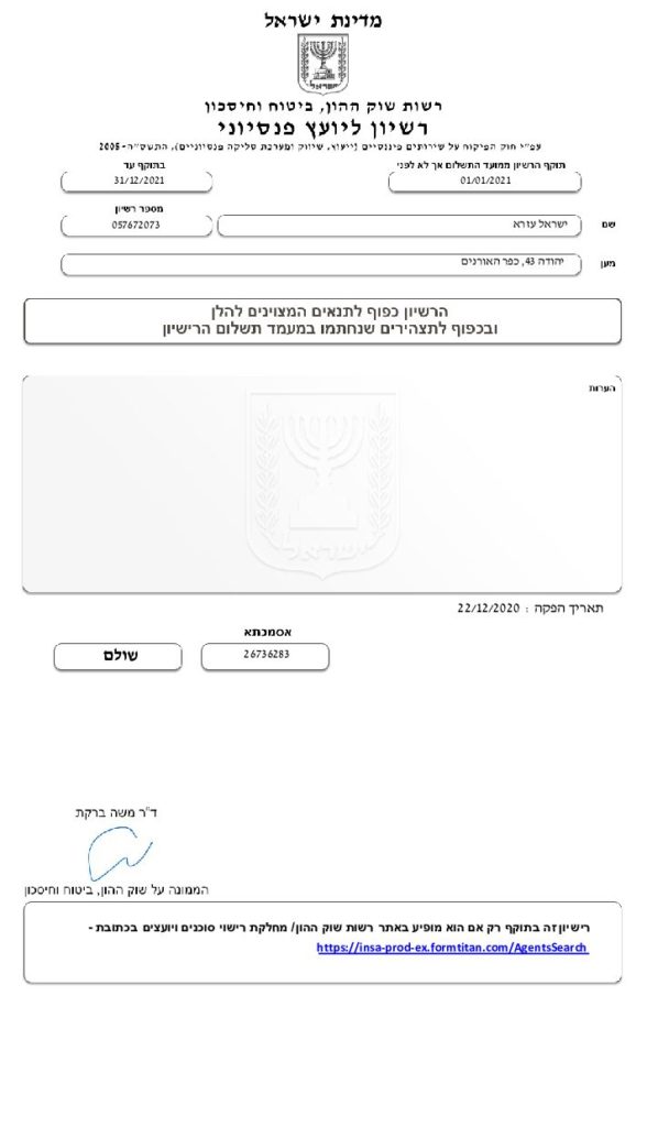 - רשיון ליועץ פנסיוני – ישראל עזרא